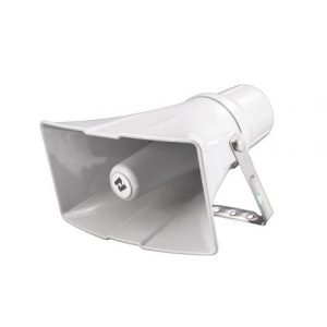 ゾーン別放送用マイク内蔵のホーン型IPスピーカー。大音量で設置数を最小限に。